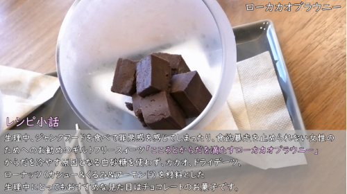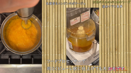 今回のレシピはコラボレーション動画の為に特別につくられた女性の心と体を温めるレシピです。女性が好み手に入りやすい食材で、簡単に調理できるよう動画をつくり、誰でも自分をケアできるようにレシピを作って頂きました。