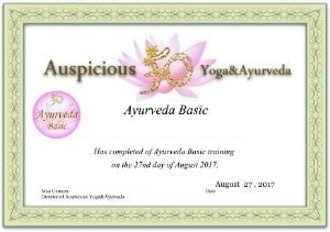 オンデマンド&オンラインの アーユルヴェーダBasicトレーニング研修を受講し、Mao先生とのオンライン個別授業を受講し、修了された方にはアーユルヴェーダBasicトレーニングコース修了証を授与致します。